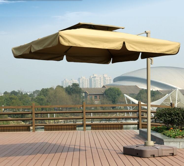 單邊傘傘座選用的是特制的大bai水箱底座,注水前是16KG,注水后du單邊傘專用水箱110KG左右,zhi86×86×20CM的規格,主體和座結合的設計,使其更顯得沉穩特色。傳統大理石底座運輸中費用高,易破損,使用中笨重不方便,菱角易磕傷人。我們的大水箱底座注水前是16KG,運輸和使用都很方便,抗壓抗摔抗老化,邊角都是弧形設計,不會磕傷人。單邊傘采用了二折傘模式,傘體可在水平位置旋轉360度,也可在垂直方向旋轉90度,也因此得名,精密的設計傳動機構系統,手搖或腳踩踏板旋轉,可升降傾斜,操作更顯簡便,一個人即可以方便地撐開和收攏。單邊傘適用范圍各種休閑場所、咖啡廳、別墅花園、露臺、茶坐、草坪、戶外、沙灘、酒吧街、商業街、門衛物業、湖邊釣魚、朋友聚會燒烤,最好的遮陽、旅游用品、是休閑遮陽的理想之選,也能使您漂亮的房子成為一道靚麗的風景線。