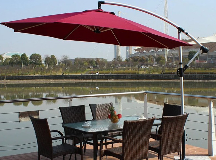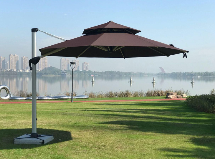 1、旋轉傘可制作成方形旋轉傘2.5*2.5m、方形旋轉傘3*3m、圓形旋轉傘(直徑:3m),材質分為鋁合金或者鐵架兩類,造型獨特,頗具時尚感的設計,整體外形結構優美,線條分明,能給人一種賞心悅目之感。傘柱單邊獨立,具備100%的空間利用率。避免了傳統遮陽傘在使用中要在桌子上穿孔的麻煩和尷尬。