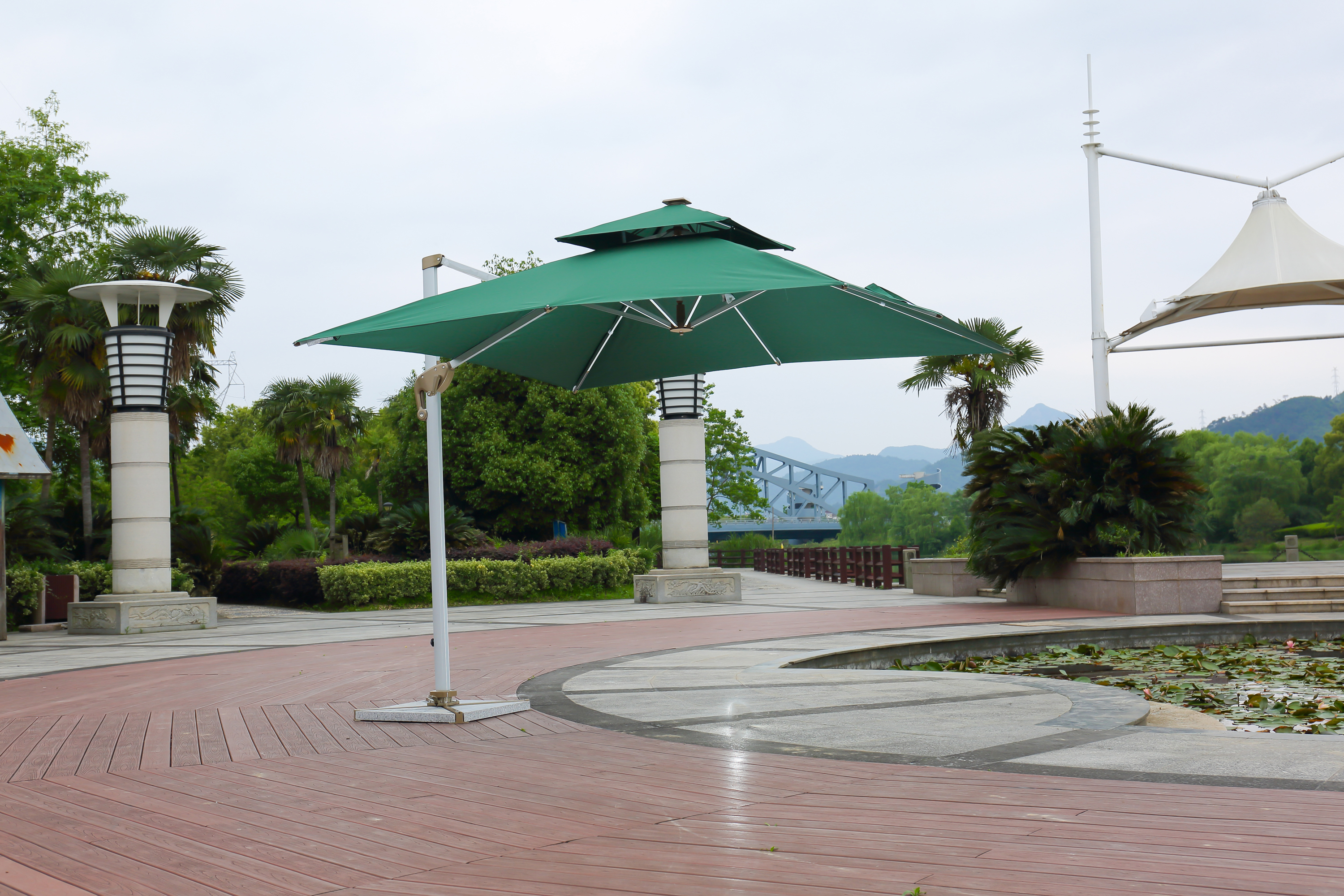 1、傘柱單邊獨立,具備100%的空間利用率。避免了傳統遮陽傘在使用中要在桌子上穿孔的麻煩和尷尬。