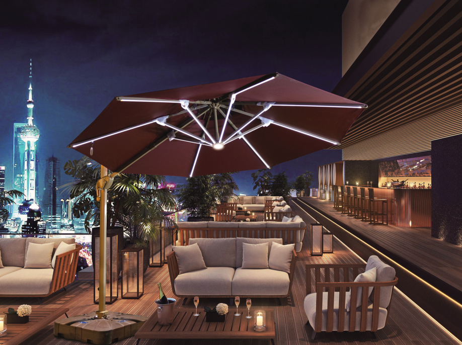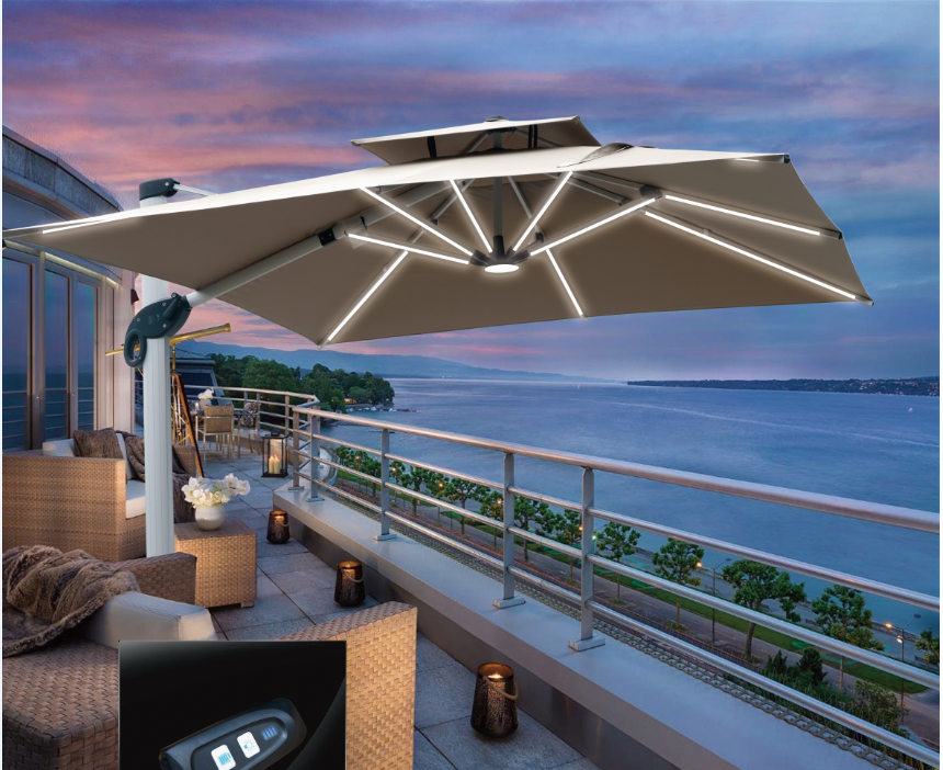庭院戶外遮陽傘,傘骨采用全鋁制造,使傘的承重力更大,精致鑄鋁把手,做工細致,耐用牢固。臺灣進口的防水滌綸布傘布,走線均勻整齊,縫紉細致,色牢度好,不易褪色。全新升級底座,360度防滑輪子,輕松方便移動。不同的傘形,不同的場景,不同的感受,無論放在哪里都一樣搶眼。